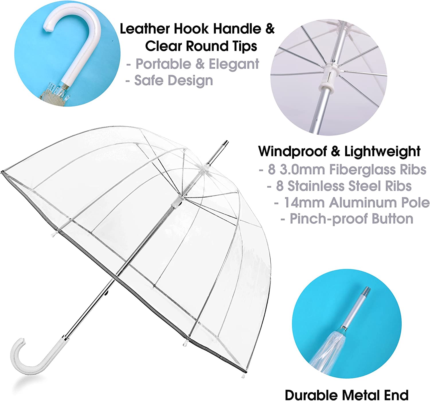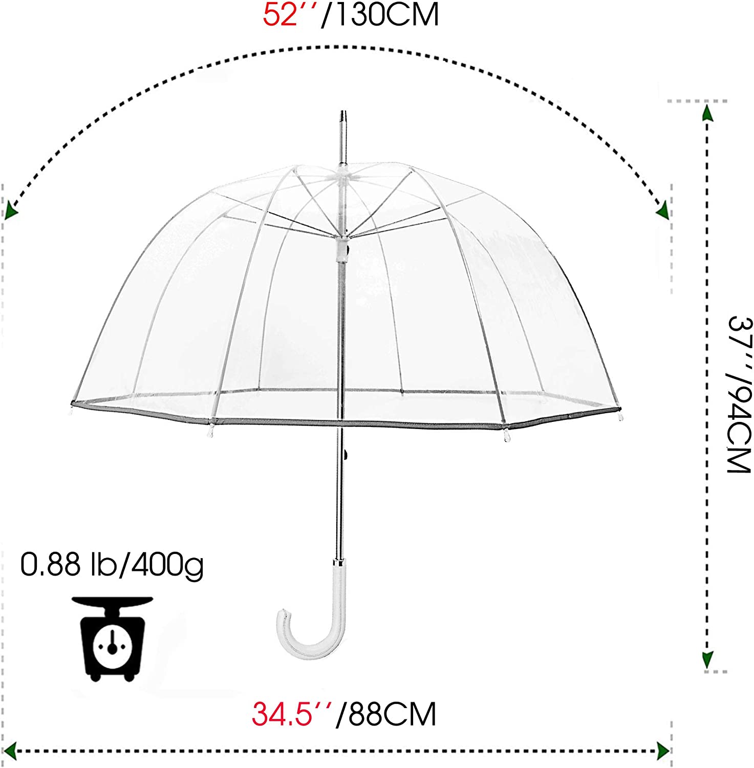 - 52” large clear umbrella canopy provide enough coverage for an adult