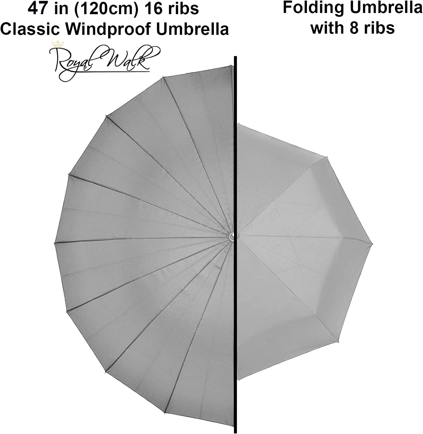 – With its amazing size of 39 inches (99cm) length and 47 inches (120cm) in diameter our RoyalWalk Large Umbrella is BIG ENOUGH FOR TWO and will keep you and your family safe from the rain. The Big Size Canopy is made from is high-density water repellent Premium 190T Pongee fabric material that makes it easy for raindrops to slip. What will make you impressed is how lightweight (only 625 grams) and at the same time solid this umbrella is.
