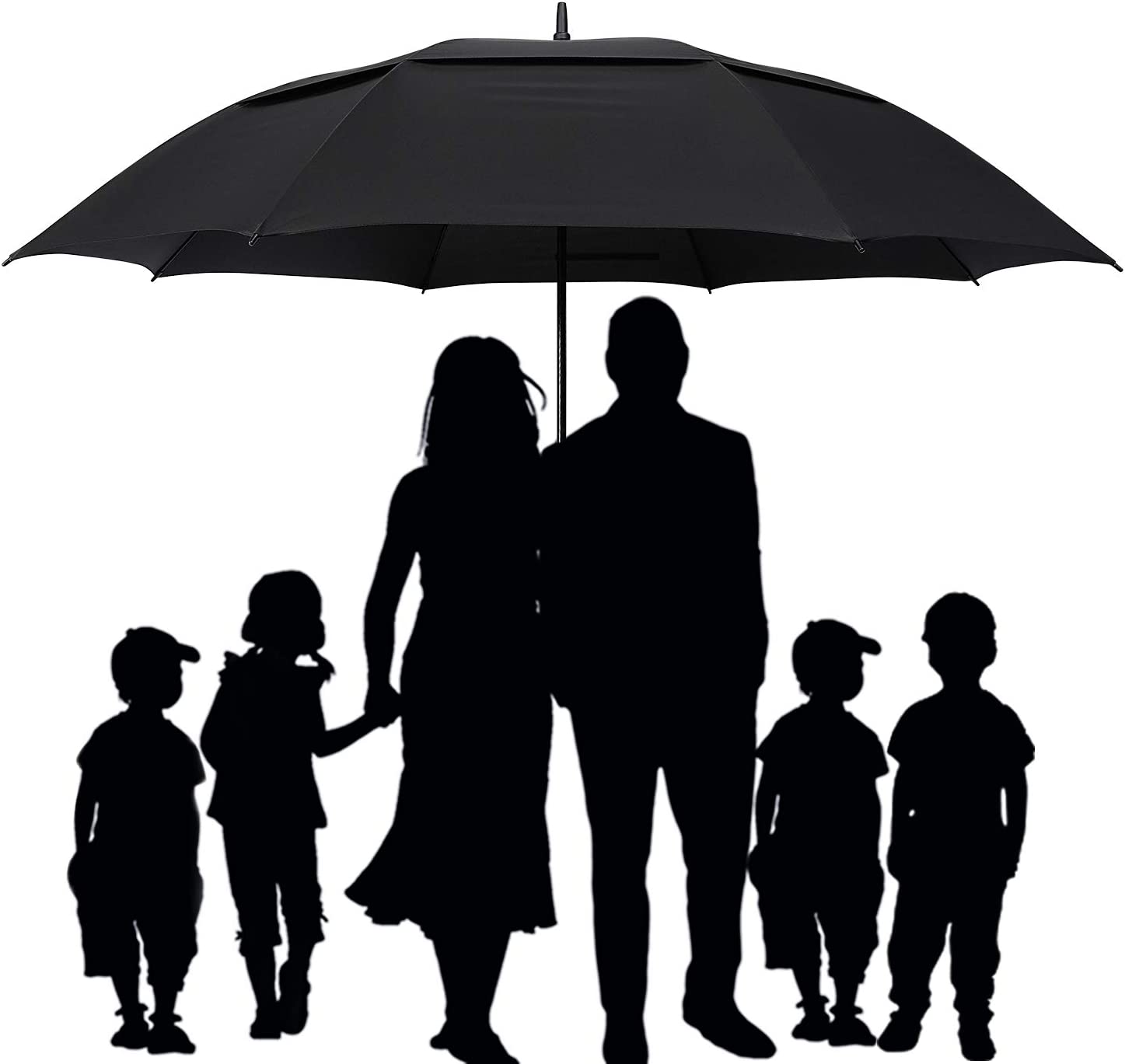 [72inch huge golf umbrellas] The oversized umbrella has a 72-inch arc and 65-inch diameter. Bigger than 62 inch/68inch normal umbrella amazing coverage. This giant umbrella can shelter 4~6 people standing tightly together. Perfect for a 6’ tall man a single couple a family of 4 or two men and two ladies keep you pretty dry.