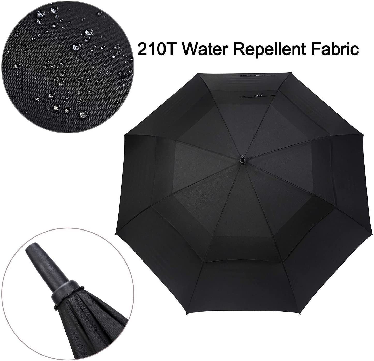 • Excellent wind resistance. This large golf umbrella has a double canopy design that creates a vent making the umbrella much easier to handle in harsh conditions not flip inside out.