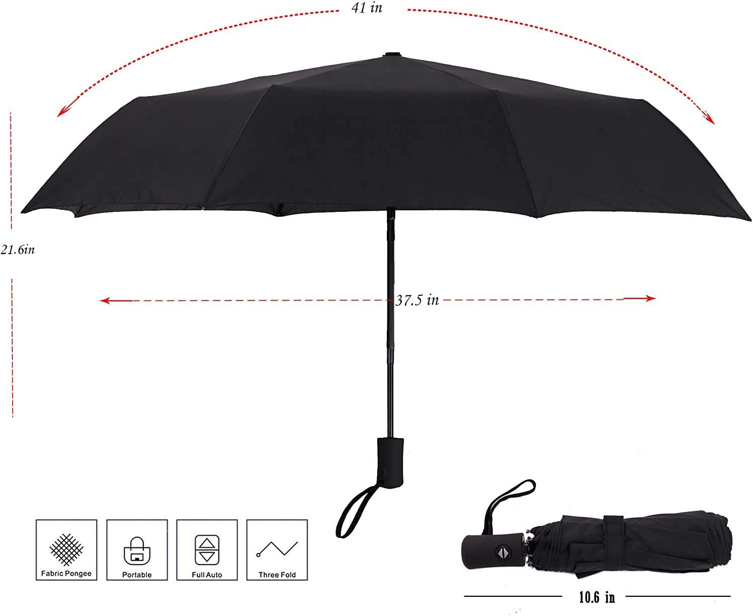 FULLY AUTOMATIC UMBRELLA: Auto open and close umbrella can handy for quick entry into a car building or tent. You can quickly open or close the travel umbrella at the press of a button