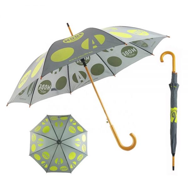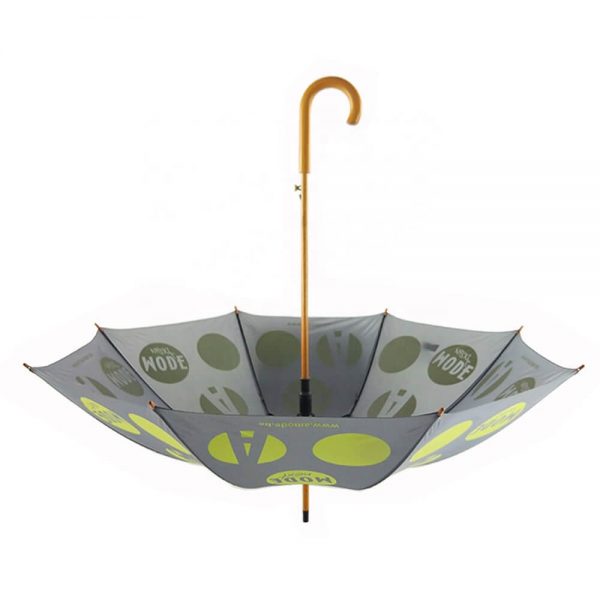 J Shape Wooden Handle, Wooden Shaft, Automatic Open, Custom Design Wooden Stick Umbrella with Branded Logo Printing from Yujing Factory.