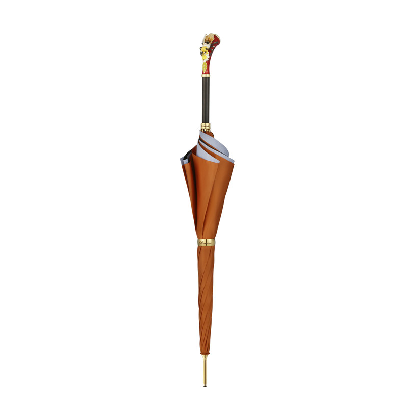 Simpler, umbrellas with a logo imprint mainly fall into the category of our stock umbrellas. Stock umbrellas come in a number of styles and sizes and start out fully assembled. We print and ship our stock logo umbrellas within ten days for a fast turnaround. Of course, there are limitations when printing on finished umbrellas. On a stock umbrella, we print in the center of the umbrella panel towards the bottom of the panel. On a finished umbrella, that is the only area of the panel flat enough to place on the printing press. We are not able to print across the seams or in the center of the overall umbrella on a stock umbrella because the ribs will interfere with the print.The bee dahlia double umbrella,Ladies straight long umbrella