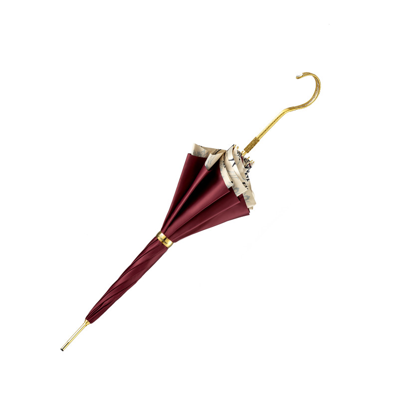 Simpler, umbrellas with a logo imprint mainly fall into the category of our stock umbrellas. Stock umbrellas come in a number of styles and sizes and start out fully assembled. We print and ship our stock logo umbrellas within ten days for a fast turnaround. Of course, there are limitations when printing on finished umbrellas. On a stock umbrella, we print in the center of the umbrella panel towards the bottom of the panel. On a finished umbrella, that is the only area of the panel flat enough to place on the printing press. We are not able to print across the seams or in the center of the overall umbrella on a stock umbrella because the ribs will interfere with the print.A drill pipe bending-handle long umbrella,Ladies curved handle long umbrella