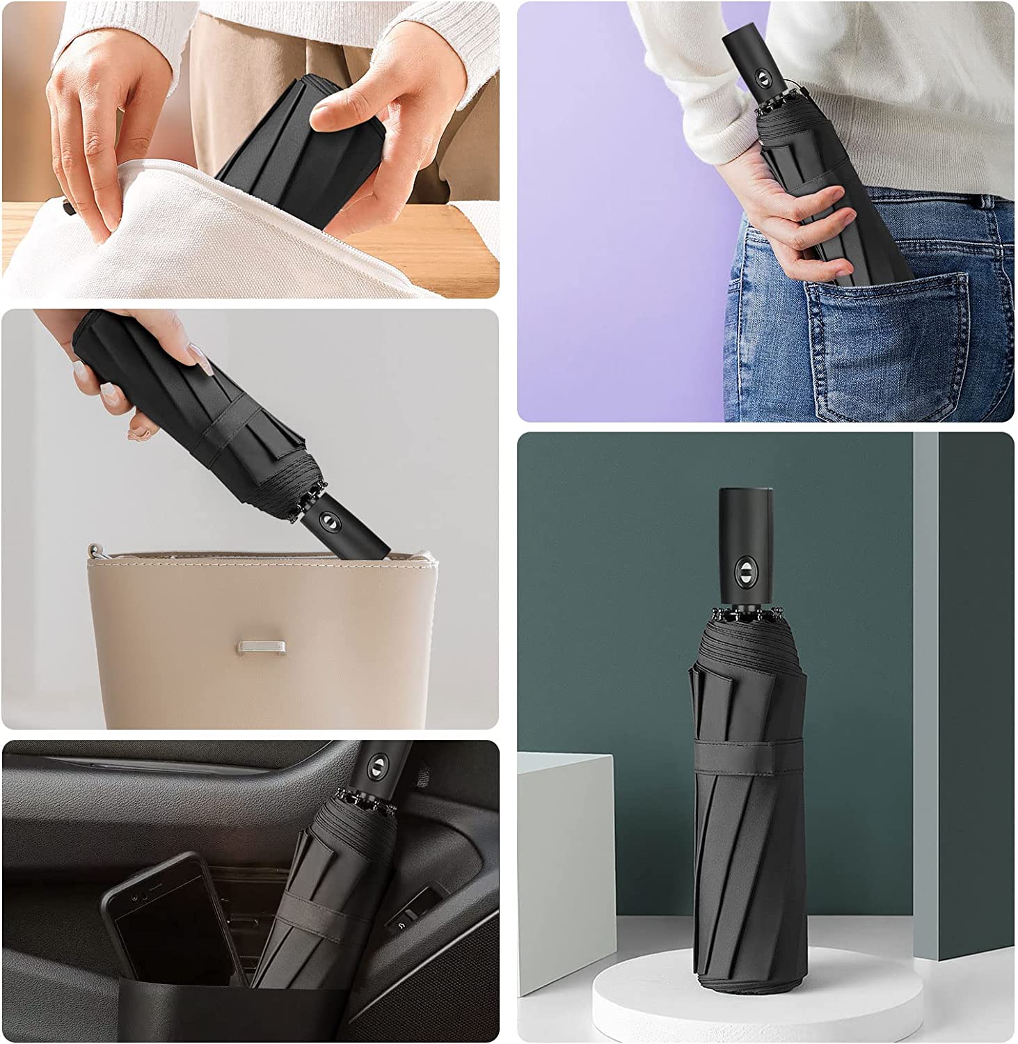 COMPACT & PORTABLE: Small folding umbrella is only 11.5 inches (29cm) in the folded state and the weight is only 0.86lb. It is lightweight and portable. Works great as a travel umbrella pocket umbrella small umbrella for purse backpacking umbrella umbrella for handbag and car umbrella etc. Ideal for travel business camping or daily life using.