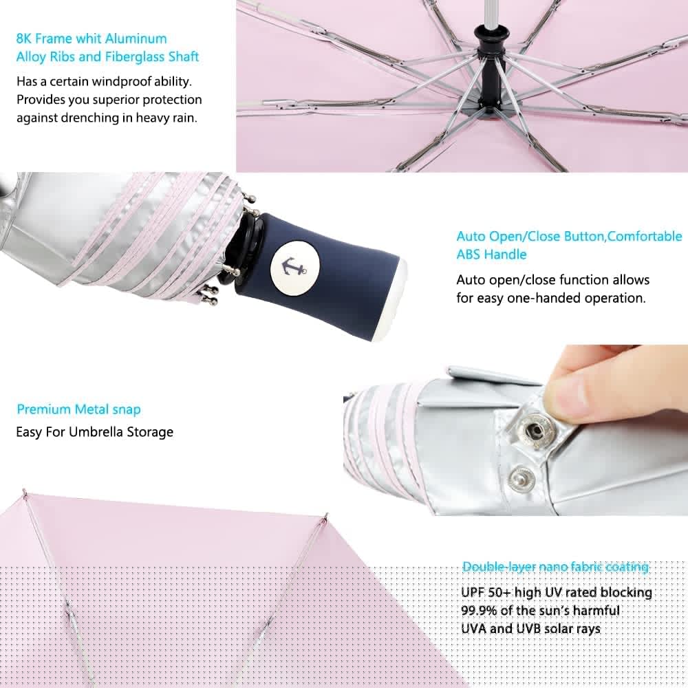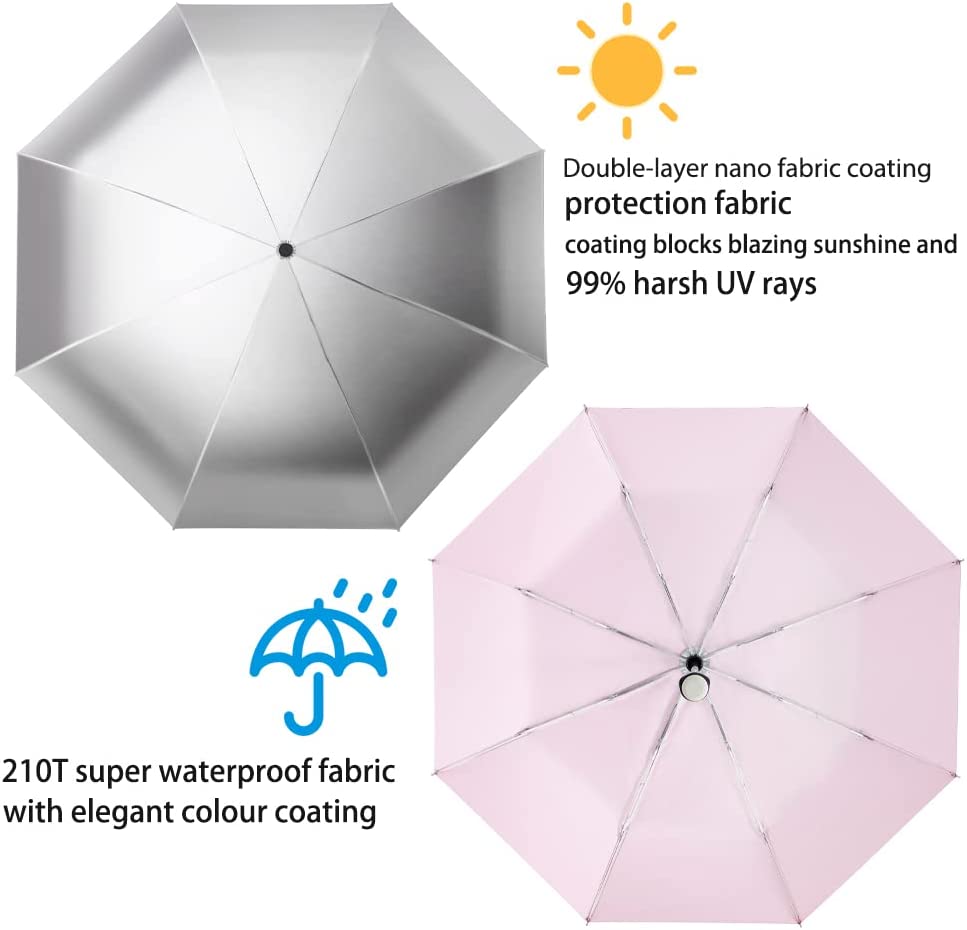 The UV protection umbrella can block 99.9% UV rays and protects you well from the strong sunlight keep you cool in sunny day and safe in rainy days and windy days.