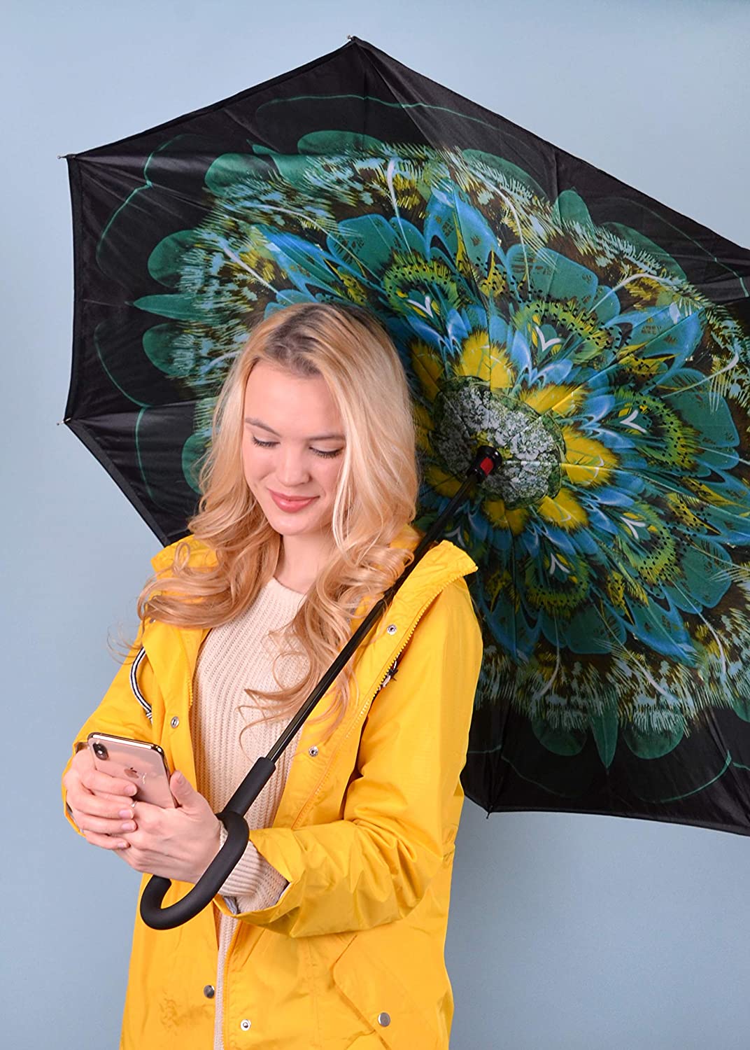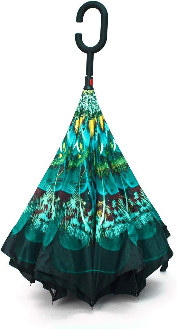 UNIQUE INVERTED DESIGN: The inverted umbrella design is the perfect addition to your rain gear. The special reverse folding design keeps the rain on the inside of the umbrella.