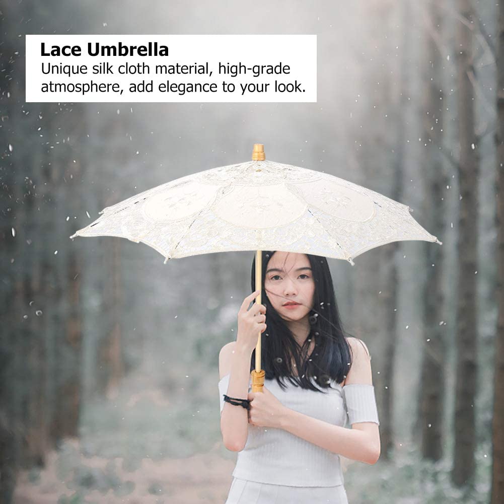 Exquisite appearance: lace umbrella with unique silk fabric material exquisite and unique appearance high-grade atmosphere adding elegance to your temperament the umbrella edge has a very beautiful lace shape perfect for wedding photography or art photo shooting.