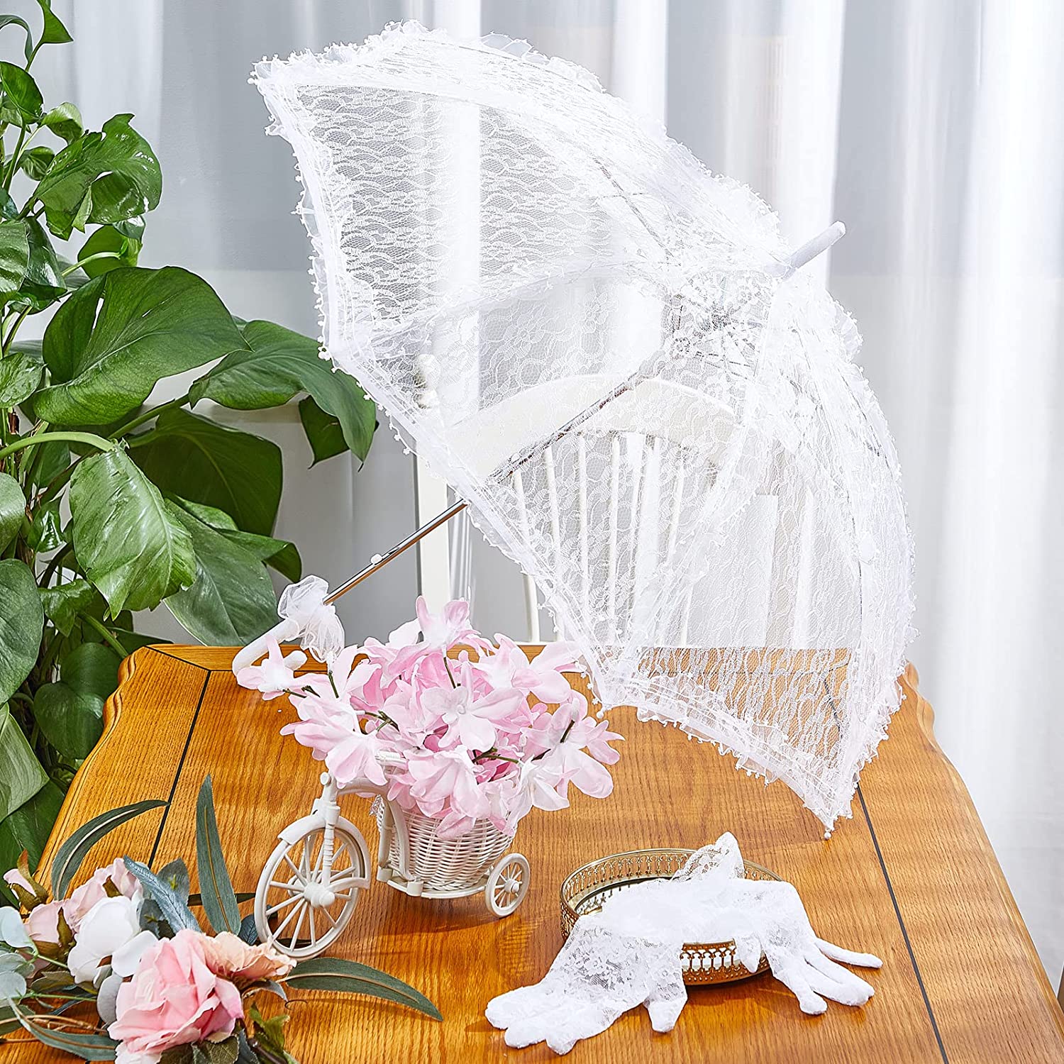 Nice Costume Accessories: the package includes 1 piece of lace parasol and 1 pair of white gloves a nice combination to satisfy your various dressing and matching needs showing your grace and personal charm