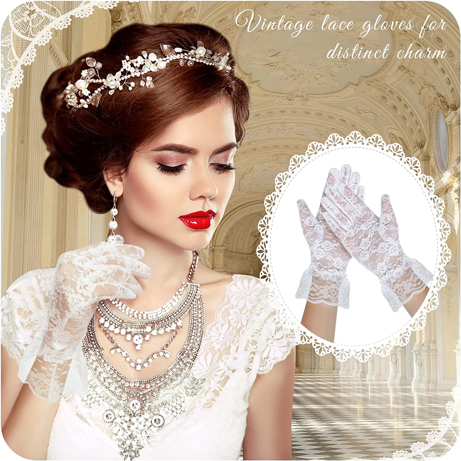 Delicate Gloves: the dress gloves are about 8 x 25 cm/ 3.15 x 9.84 inches convenient to put on and take off suit most women’s wrists and can add a delicate touch to your outfits with floral patterns of lace