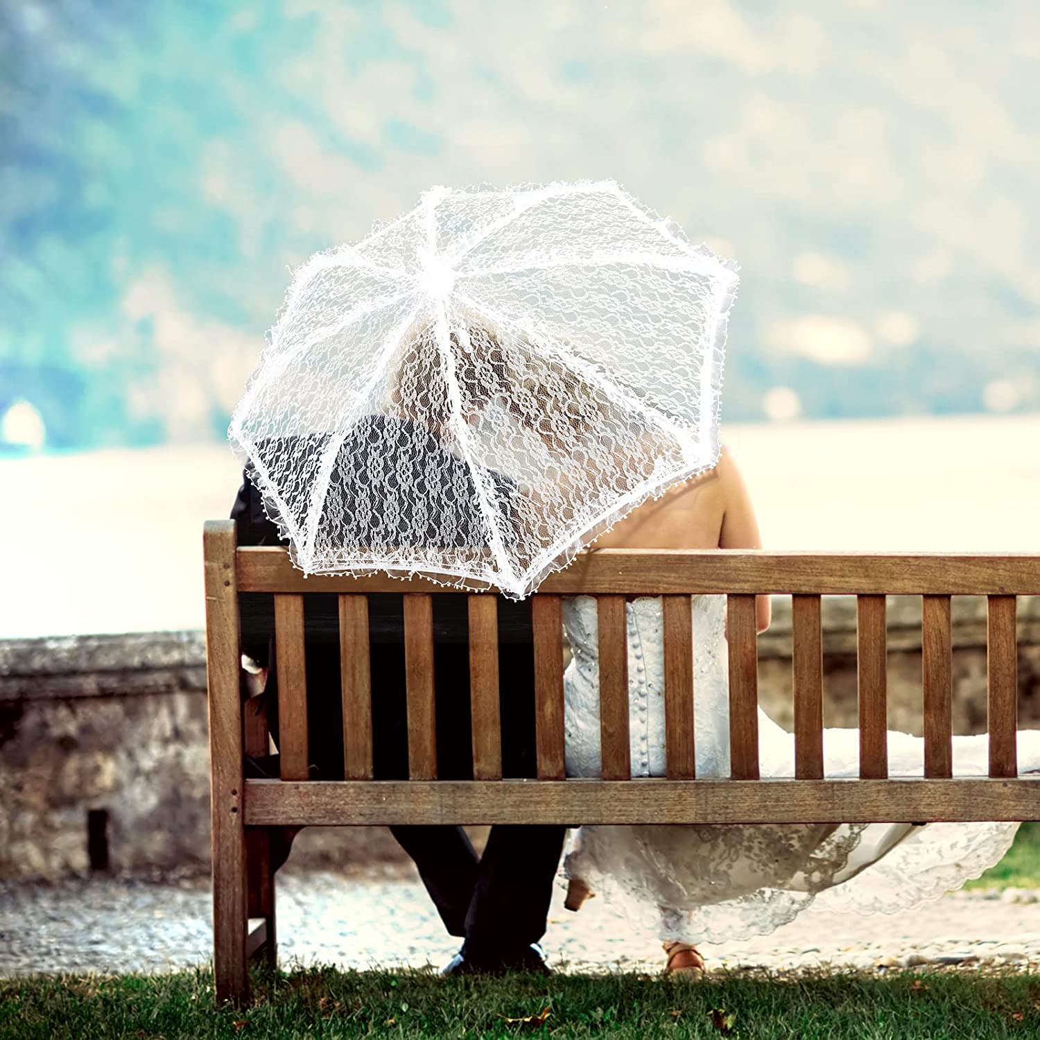 Elegant Umbrella: the wedding umbrella is designed in pure white color and features lace trims which are simple and elegant easy to match with different dressing styles and hairstyles and can keep you from sunlight and wind;the umbrella length 80 cm/ 31.5 inches under umbrella diameter is 75 cm/ 29.53 inches