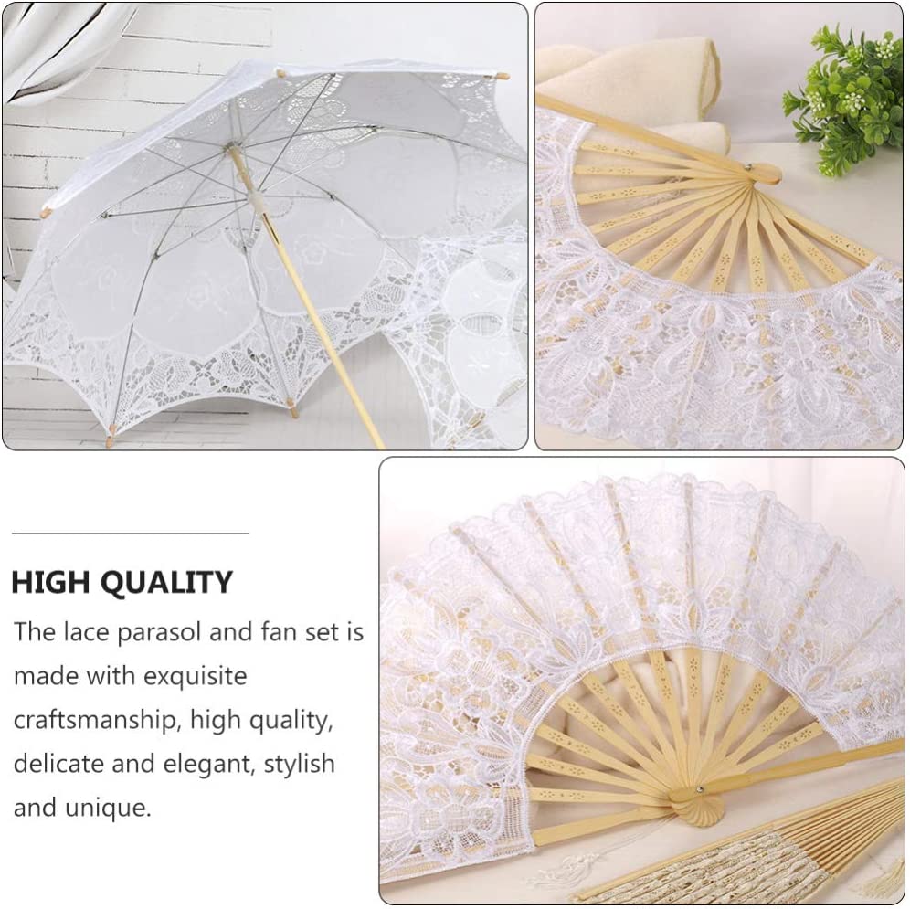 The lace parasol and fan set is made with exquisite craftsmanship high quality delicate and elegant stylish and unique.