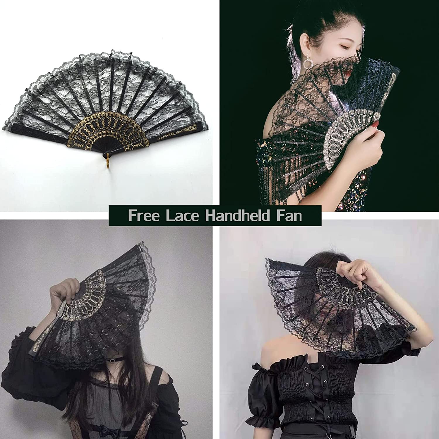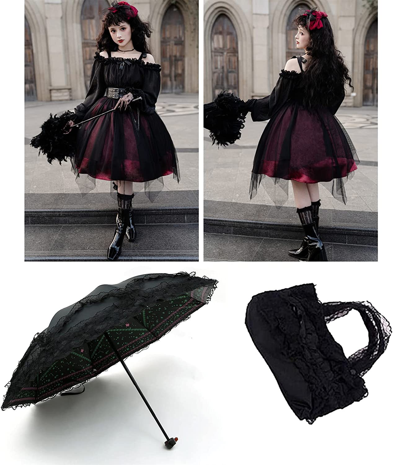 [Classic & Vintage]: The black lace parasol and fan are the perfect find for your gothic aesthetic goth shoot steampunk costume halloween costume cosplay or wedding.