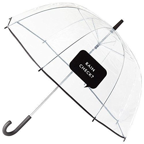 custom umbrella with logo Clear Dome Umbrella Lightweight & easy to hold When expanded this clear umbrella measures 35 inches (88.9 cm) wide Umbrella is made of clear plastic for easy visibility in weather Curved handle is easy and comfortable to carry When was the last time you actually wished for rain? You will be hoping for afternoon showers just so this lovely custom umbrella with logo rain umbrella can get some exposure. We love how the transparent umbrella earns its place as a stylish accessory and you will love how it will keep a rain-soaked bad-hair-day at bay. This cute umbrella is featured in a clear design with a bold block saying “rain check?” Portable umbrella measures 32.5 inches (82.5 cm) long and 35 inches (88.9 cm) wide and has a curved handle. This clear bubble umbrella makes the perfect birthday graduation or Mother’s Day gift!
