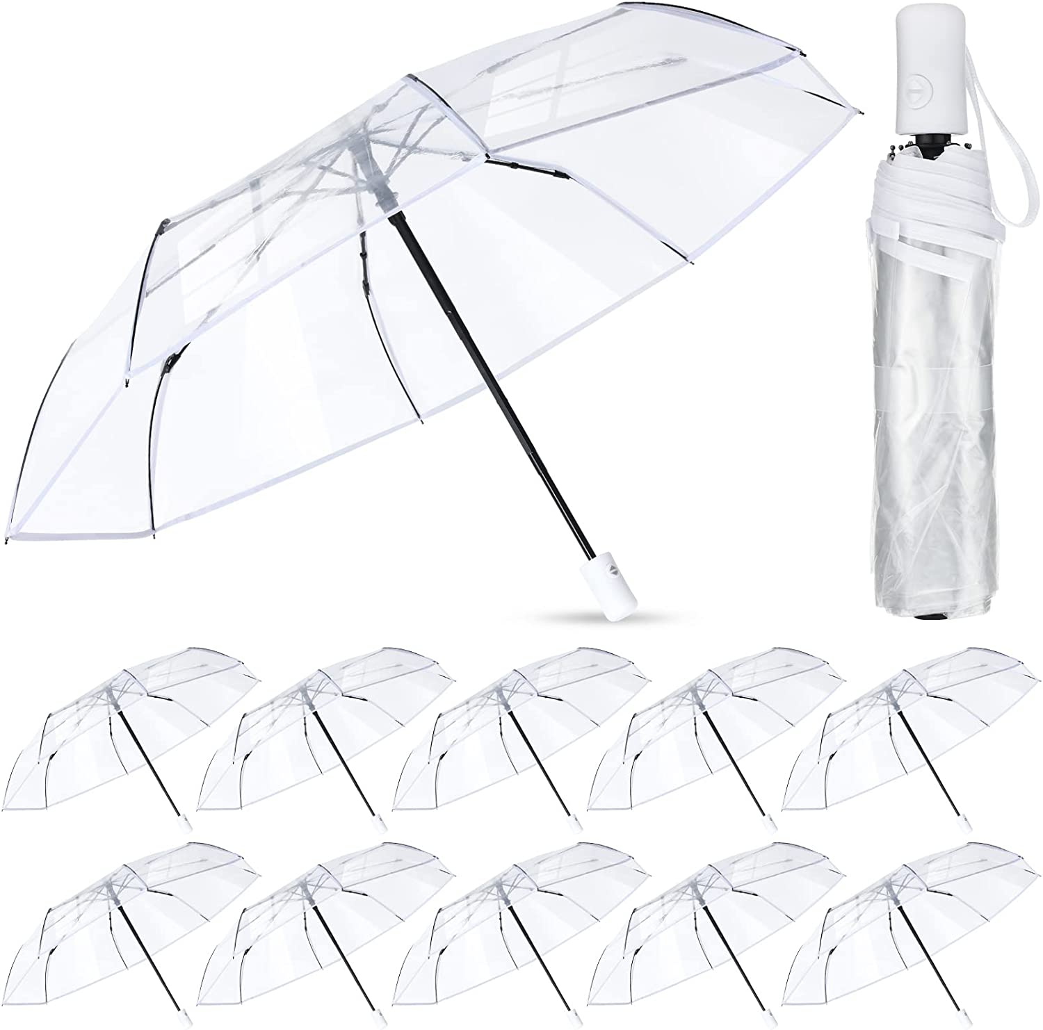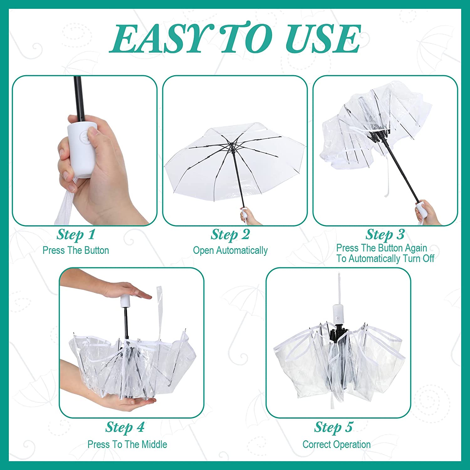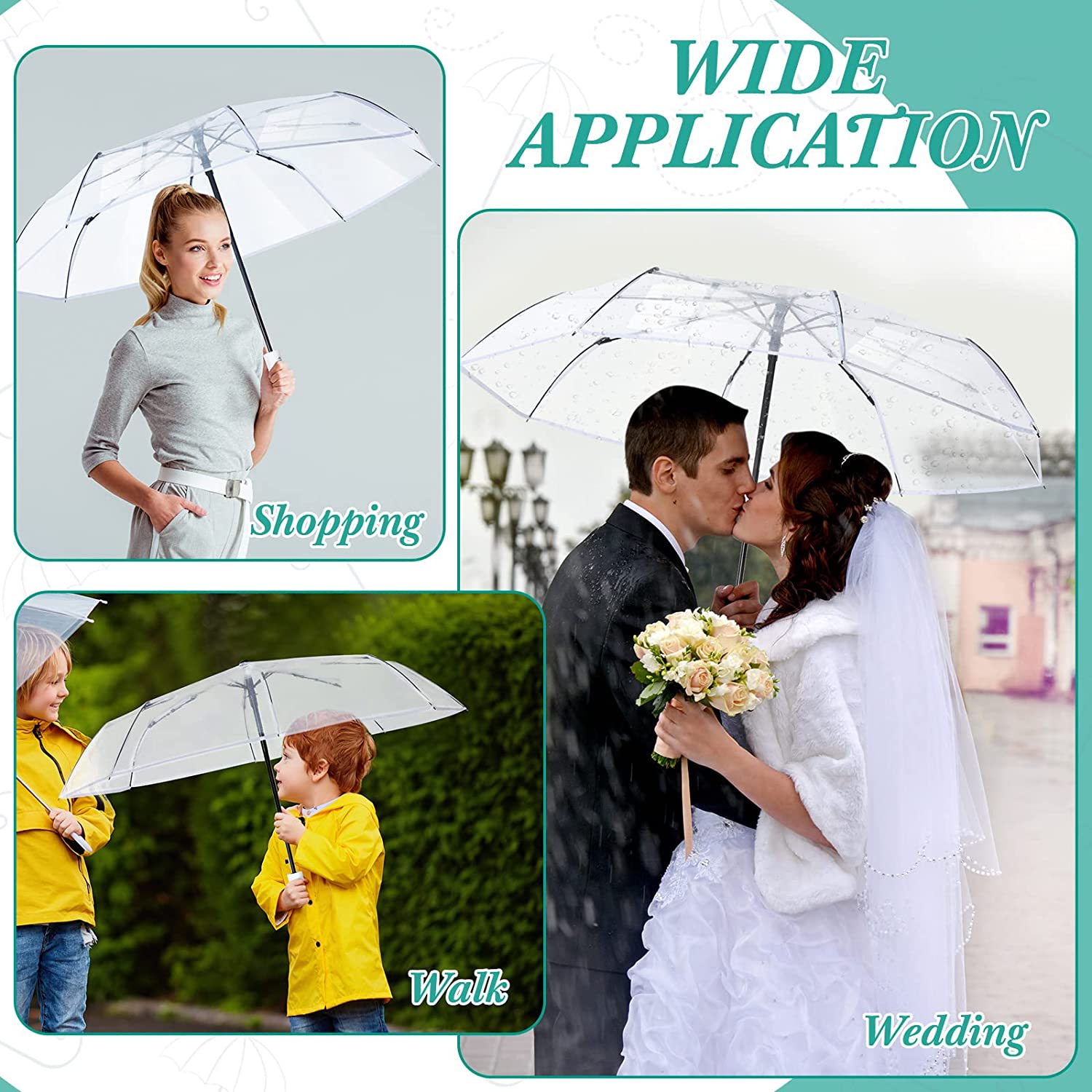 Made of quality alloy and plastic materials this foldable clear wedding umbrella is sturdy and strong with an 8-ribs design it can withstand heavy winds without tipping over and breaking light and portable suitable for travel business and daily use.
