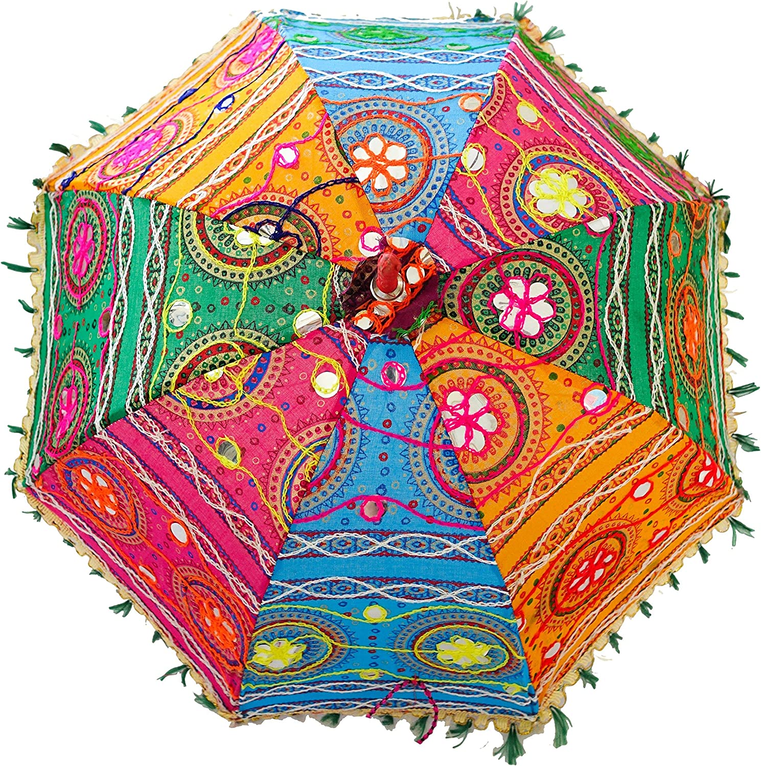 Shade in Fashion! These Parasols give you endless options to block the sun in fashion use as a perfect outfit accessory use as room decor or brighten someone’s day with these beautiful Indian handcrafted sun parasols. (made of cotton and not waterproof!)