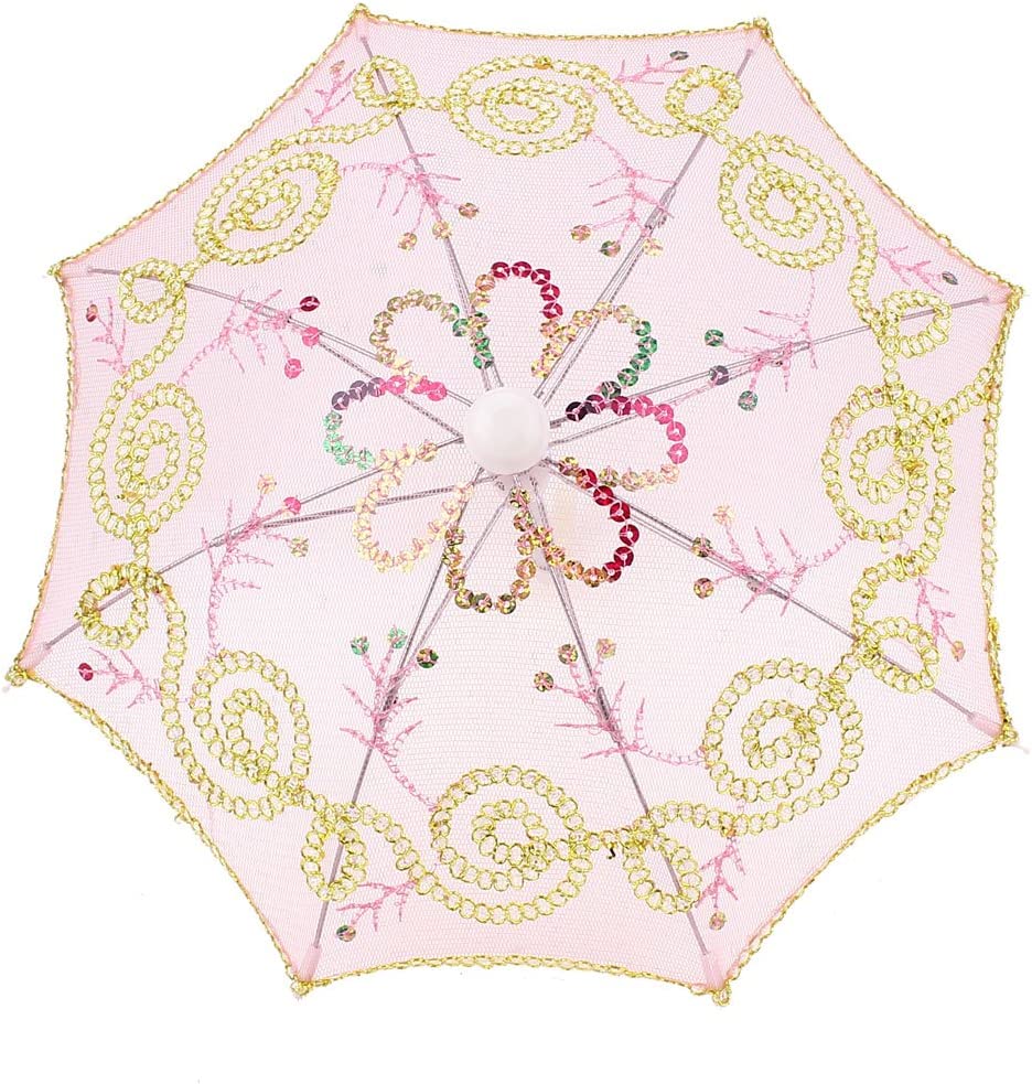 Handmade Wedding Party Sequin Ornament Lace Mini Parasol Umbrella Pink