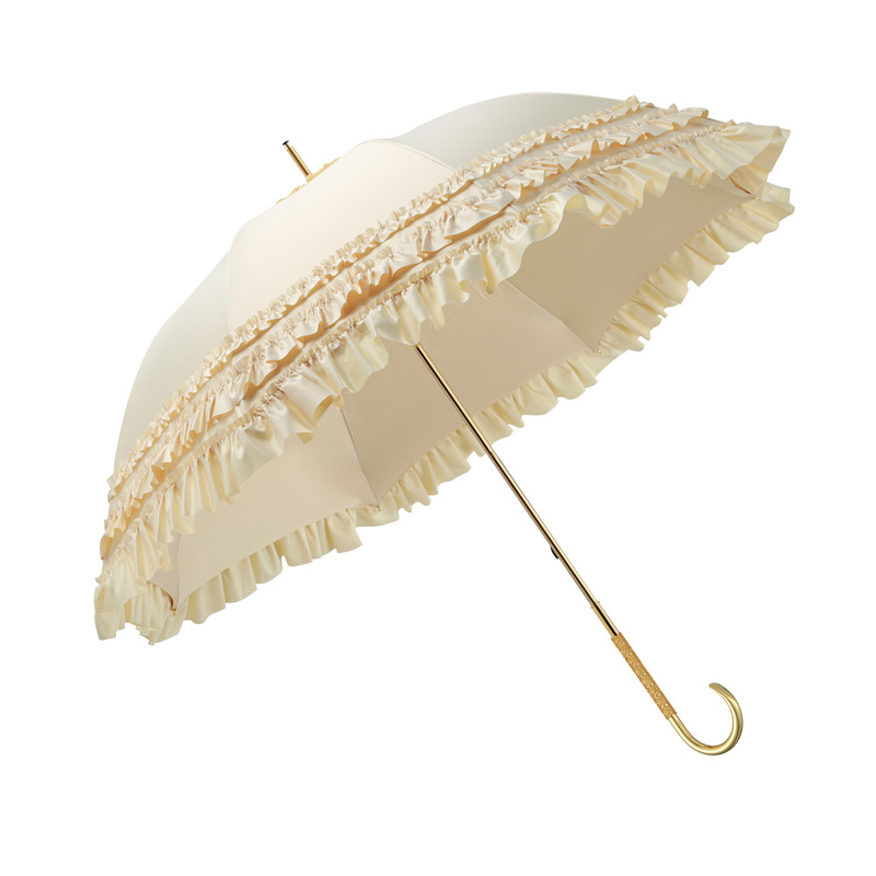 Rice white edge bent double umbrella,Ladies curved handle long umbrella , Custom umbrellas from the frame to the fabricRice white edge bent double umbrella|Umbrella Manufacturers & Suppliers