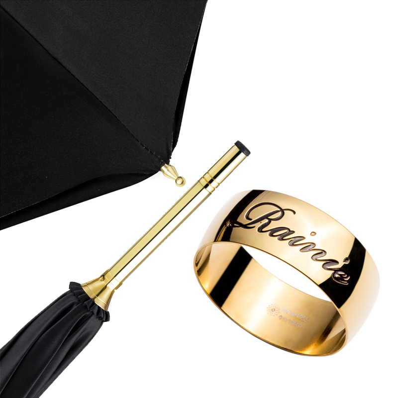 Simpler, umbrellas with a logo imprint mainly fall into the category of our stock umbrellas. Stock umbrellas come in a number of styles and sizes and start out fully assembled. We print and ship our stock logo umbrellas within ten days for a fast turnaround. Of course, there are limitations when printing on finished umbrellas. On a stock umbrella, we print in the center of the umbrella panel towards the bottom of the panel. On a finished umbrella, that is the only area of the panel flat enough to place on the printing press. We are not able to print across the seams or in the center of the overall umbrella on a stock umbrella because the ribs will interfere with the print.Rose-long umbrella,Ladies curved handle long umbrella