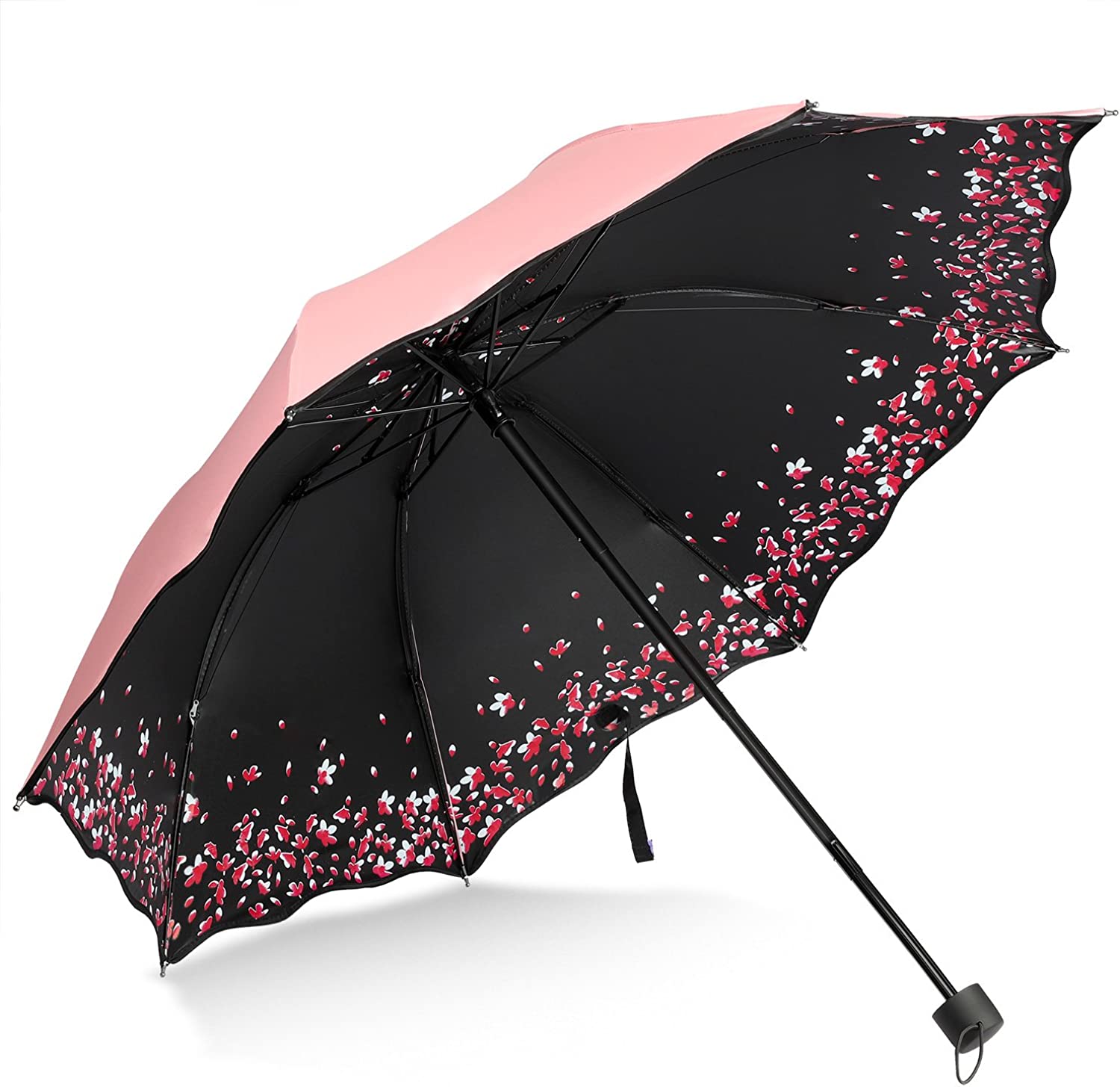 Protection and Waterproof Perfomance:The new umbrella has a cherry blossom watermark continues classic black parasol and durable design allow it to meet more occasions as well as people’s needs keep you dry in the rain sleet and snow.