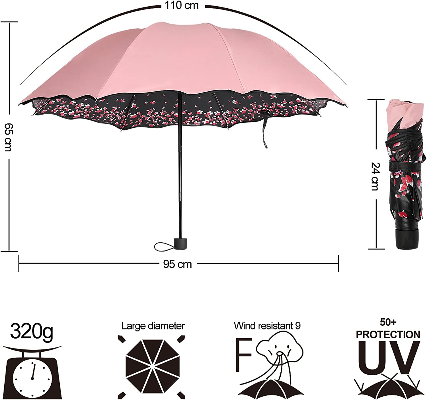 Compact and Portable: The length of the sakura umbrella is 95cm and the unfolded length is 110cm the weight of the umbrella is 320g. Keep the personal umbrella in your bag in case of rain or snow.