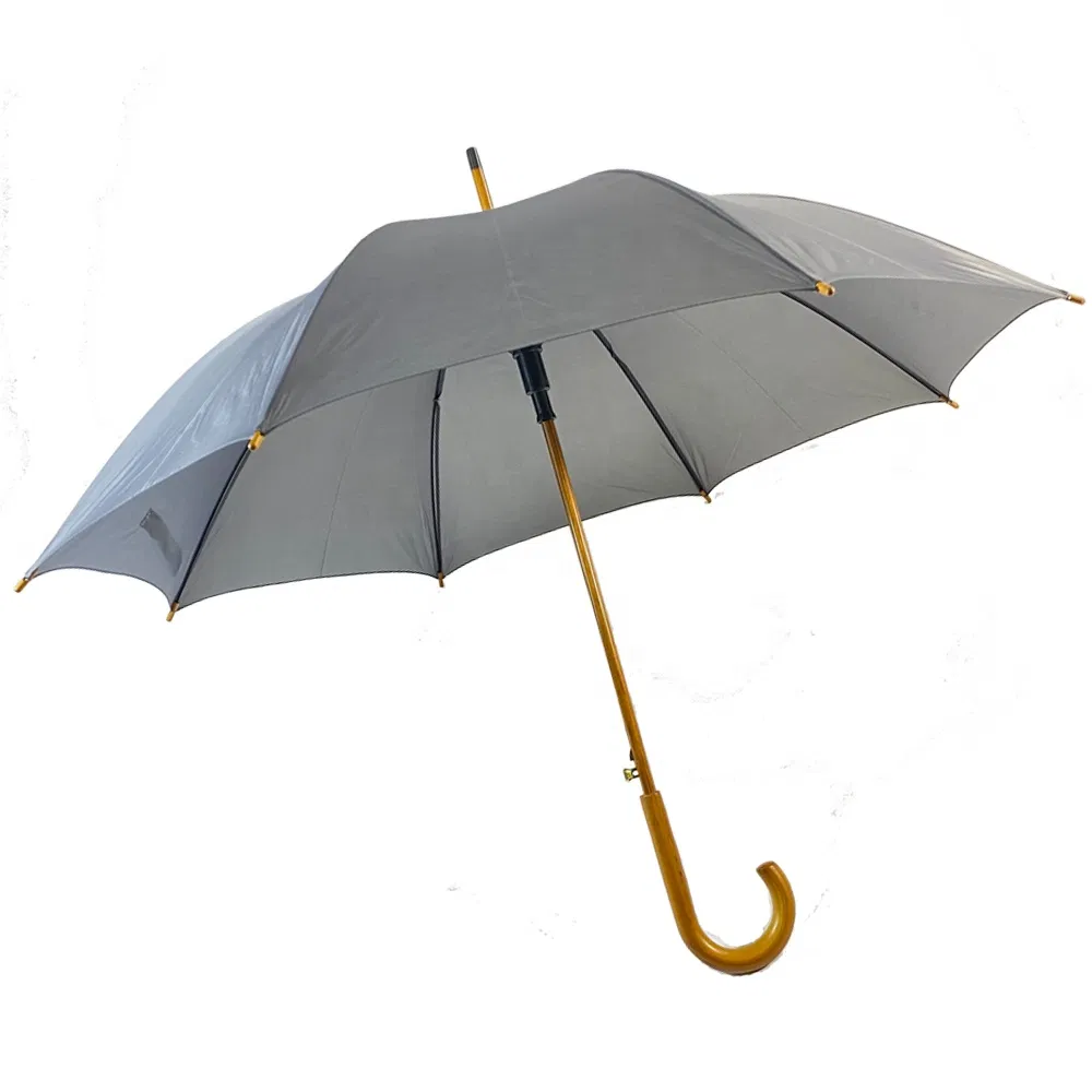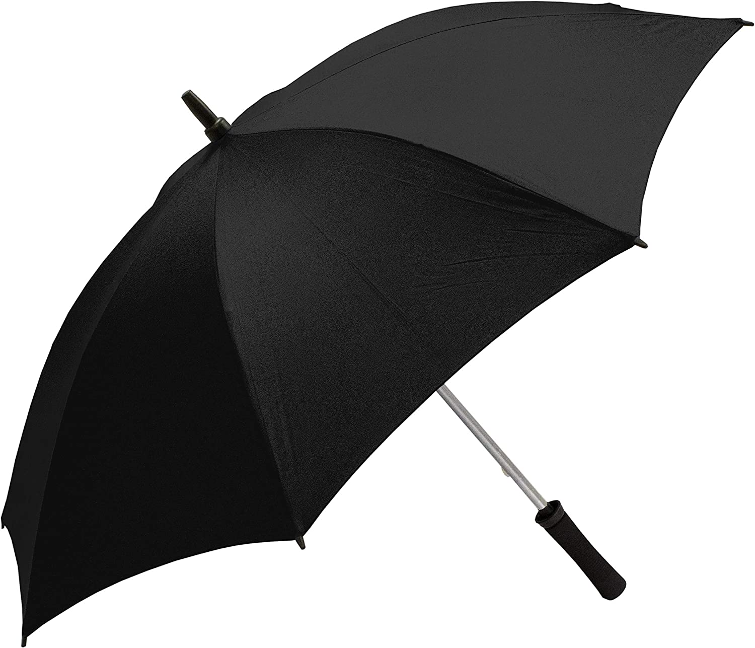 This staple umbrella has a chrome-coated steel shaft and a double rib construction for windy days. The lightweight handle is textured for a confident hold.
