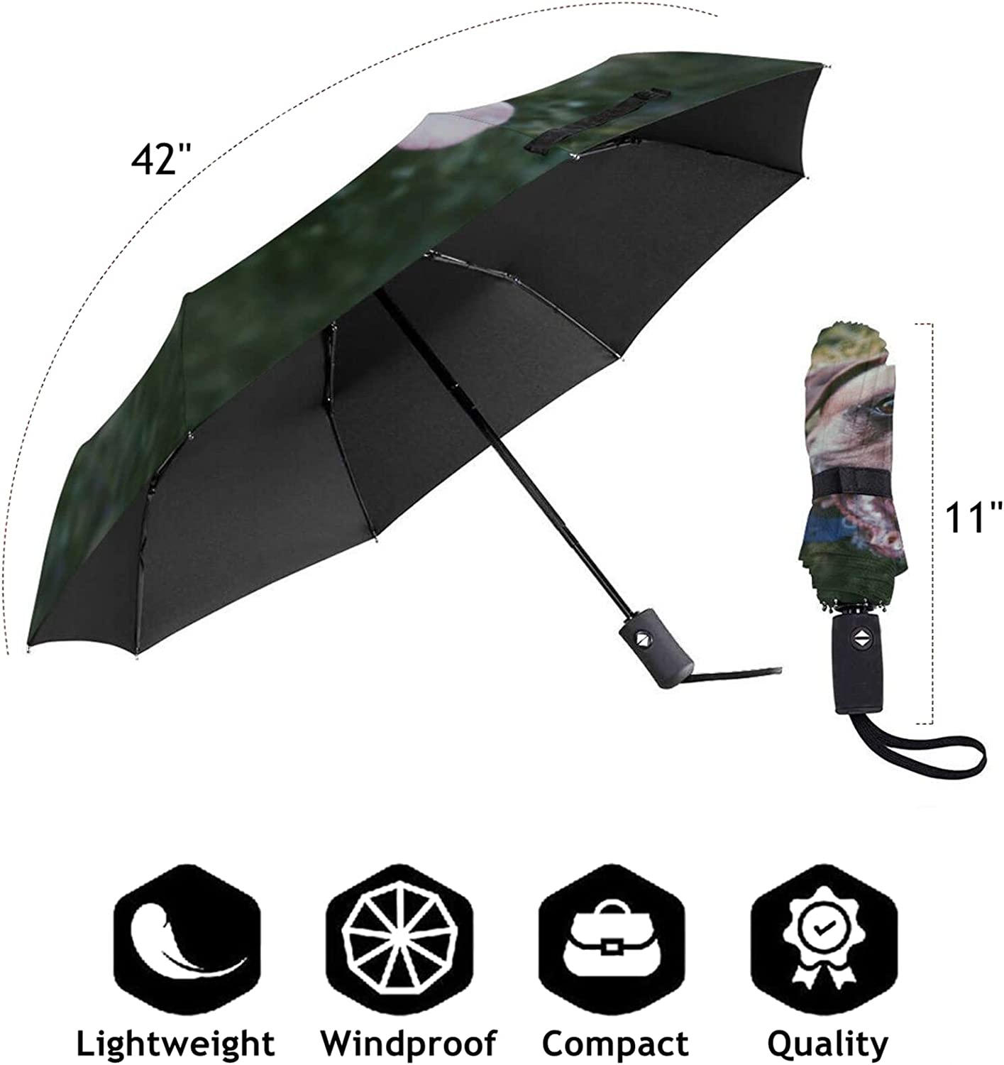 This is an multipurpose foldable umbrella Your pictures logo pattern design name or text designs and so on can be all over printed on the canopy it’s the unique customized umbrella; Also this umbrella has a variety of useful functions: Excellent water resistant Perfect UV blocking Auto open and Auto close Strong wind resistant Lightweight and Portable etc.