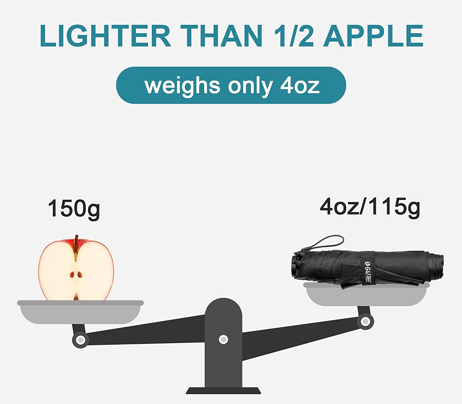 This featherlight umbrella weighs only 4 oz so that adds no burden to your purse or bags and can be carried around all day with ease.