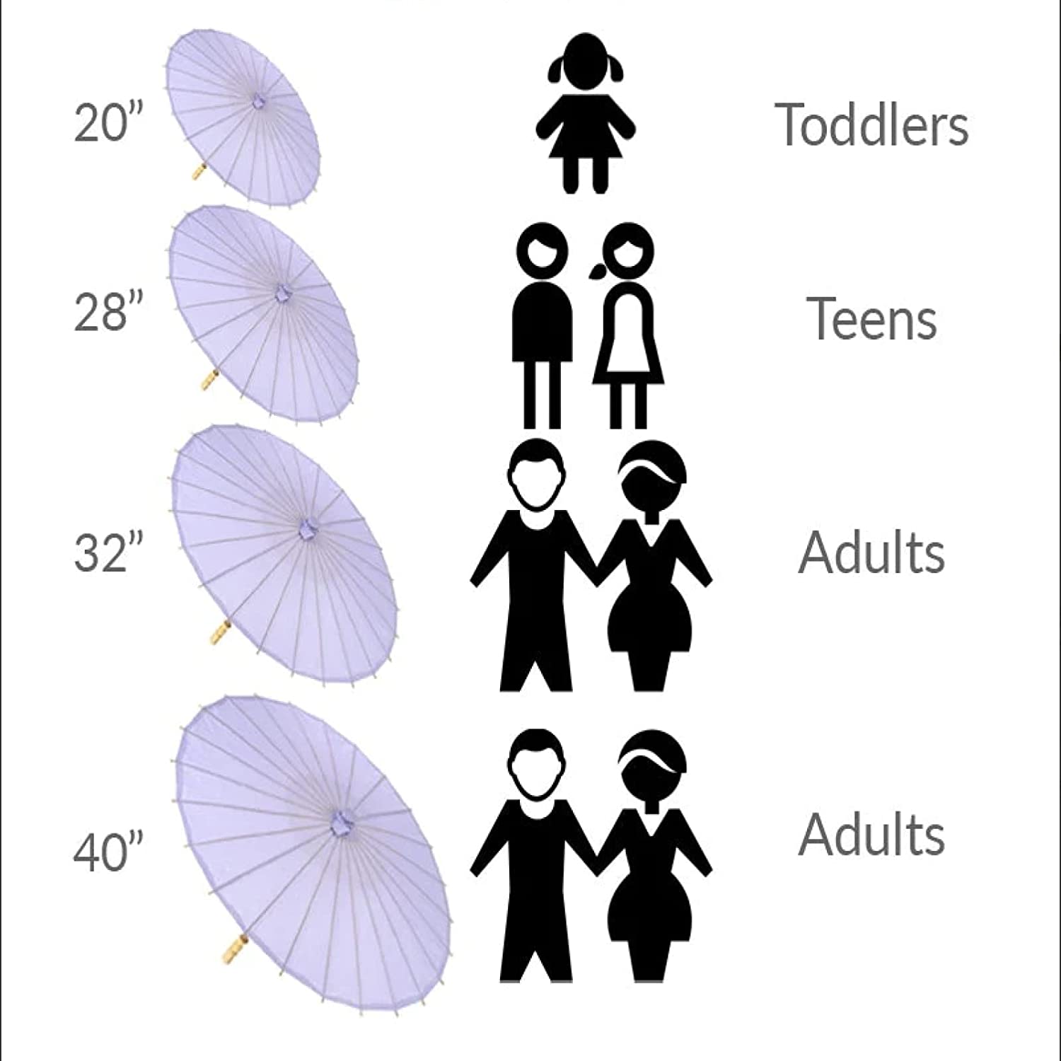 offer a beautiful and fun way to dress up any Wedding Reception Birthday Party Baby Shower or any Special Event space. offers these Parasols in many different styles sizes shapes and are traditionally representative of weath and royalty. Built from Bamboo and Rice Paper these are a great Green” decorating choice and can be hung upside-down as decoration too. The 32″ diameter versions are best for adults 23 inches for kids. and are traditionally representative of weath and royalty. Built from Wood and Rice Paper these are a great “Green” decorating choice and can be hung upside-down as decoration too. Add LED Lights or String Lights and you’ll have a DIY Umbrella Lantern. Transform a plain-looking ceiling into an extravagant piece of art by floating them above Table Decor hanging them from tents or use them as a table Centerpiece. Guest and kids will love these as Wedding Favors or as DIY Paper Parasol backdrops.