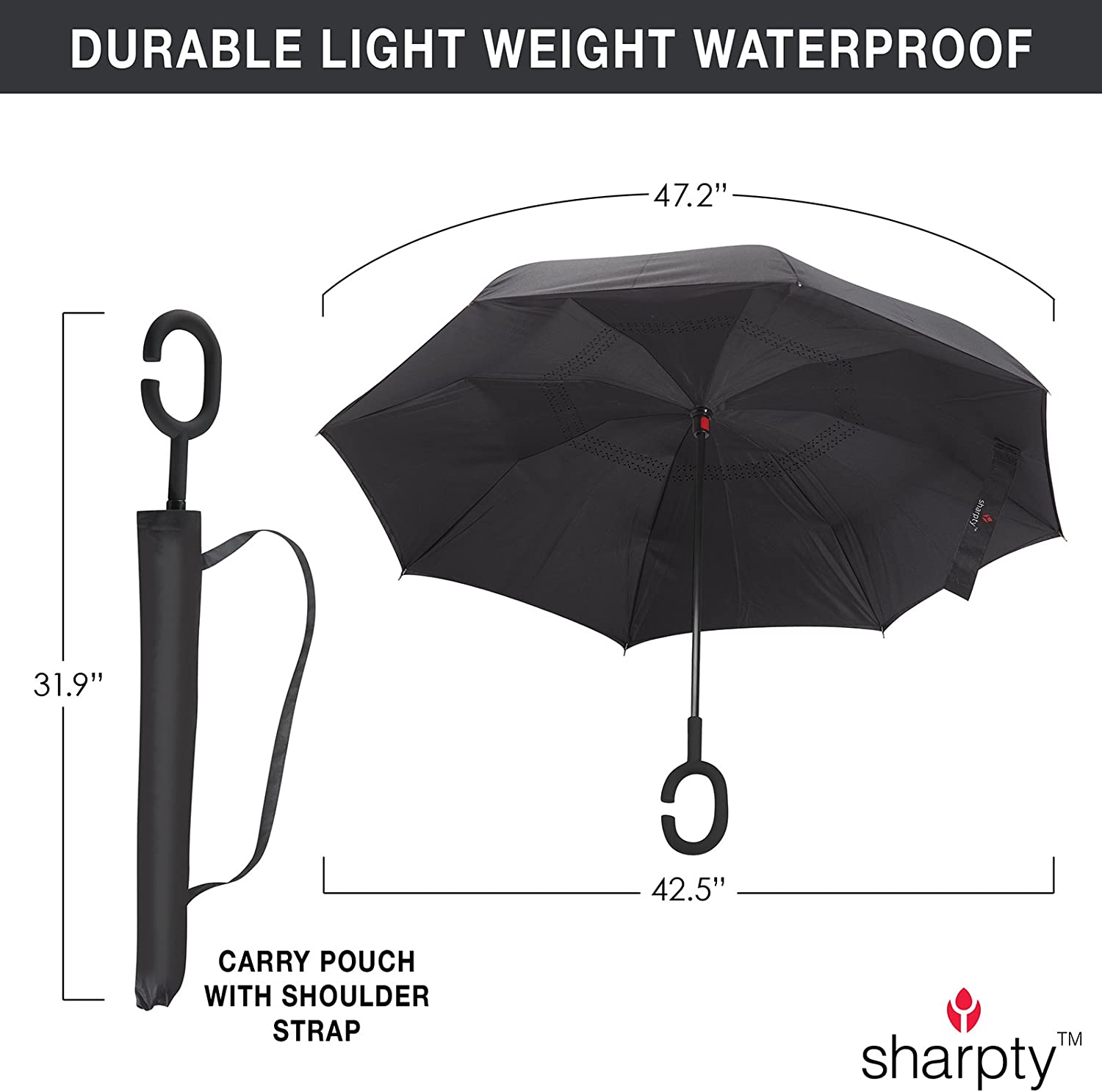 PERFORMANCE – This exclusive Inverted umbrella t you stay dry and look impeccable even after walking from the parking lot to make that important business pitch. When you reach your destination and close the custom umbrella with logo rain collects inside ais designed with durability versatility and comfort in mind. umbrella is constructed with premium carbon fiber material which is sturdy corrosion resistant and features double-layer canopy design to protect against rain and wind