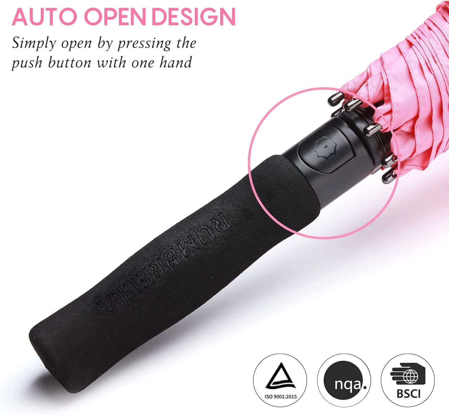 【AUTOMATIC OPEN】 – You will love its nonslip EVA handle owing to the soft and comfortable feel. Simply press the button on the handle it will open automatically.